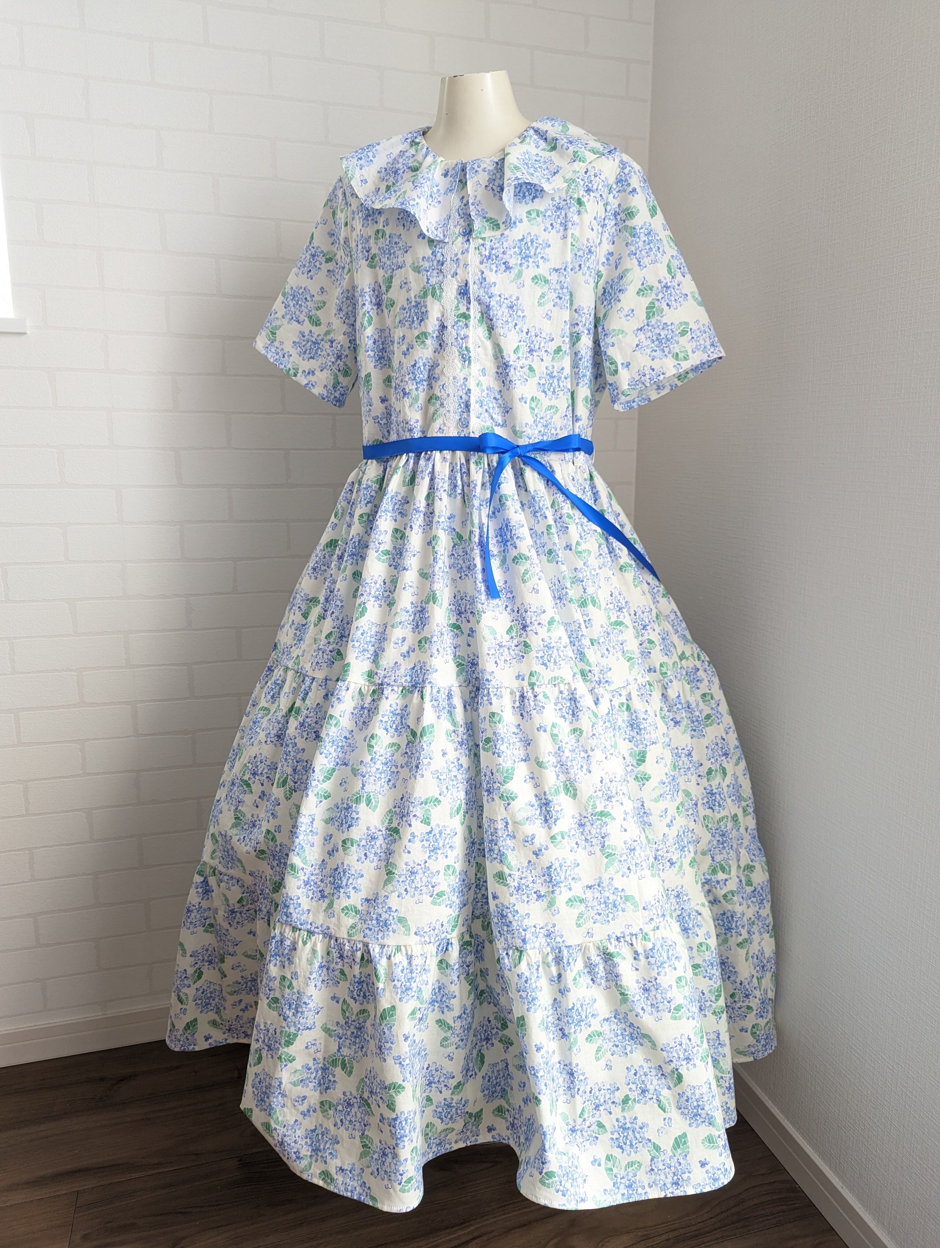 爽やかな夏の装いにぴったりな、紫陽花のサマーワンピースです。