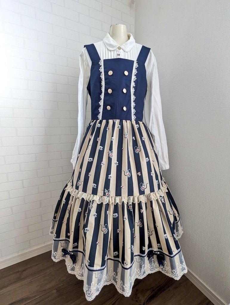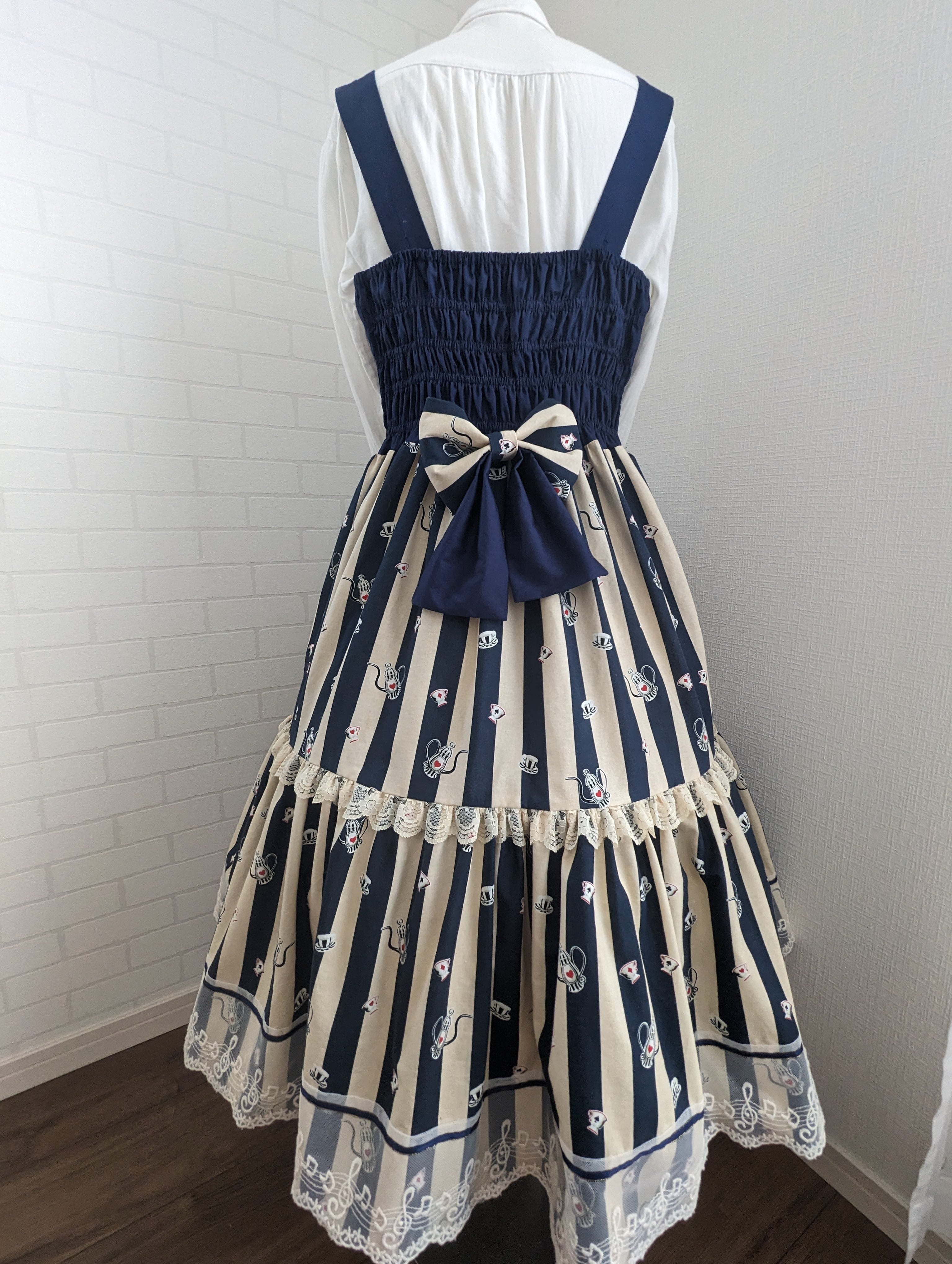 不思議の国のアリスを思わせるストライプ生地をJSKにしました。